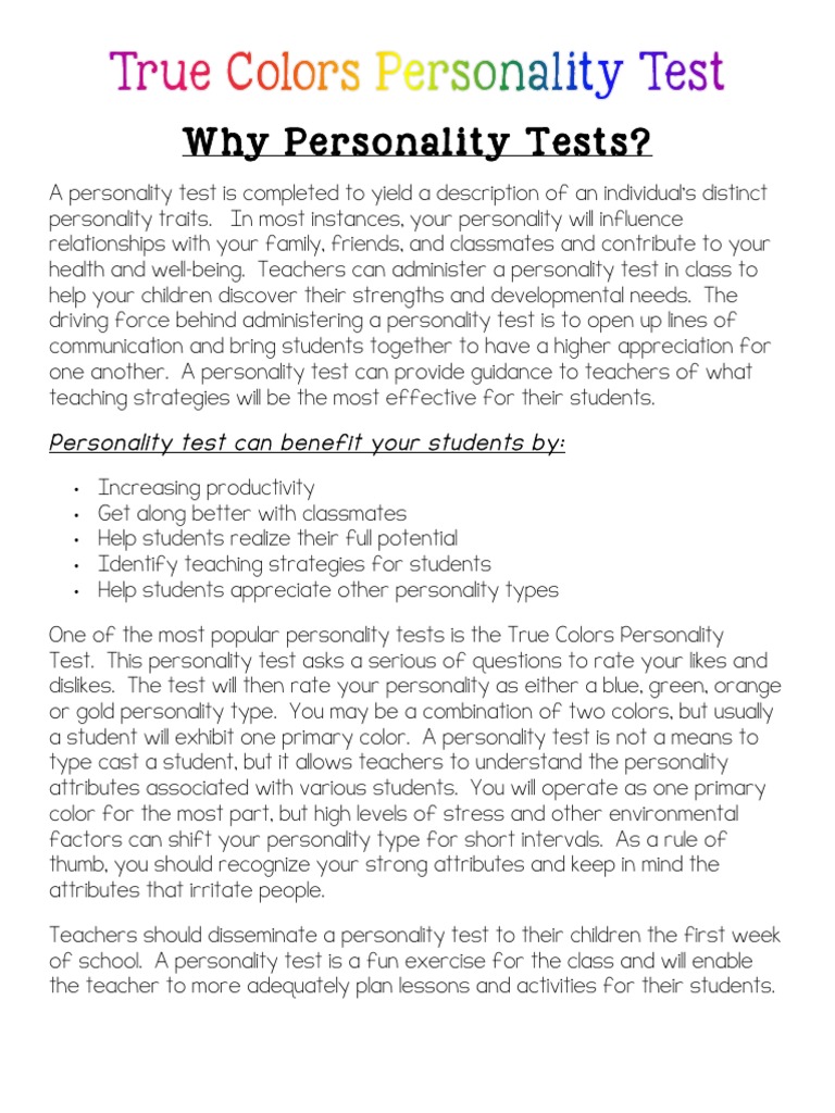Truecolorspersonalitytestfreebie Pdf Pdf Phrase Sentence Linguistics